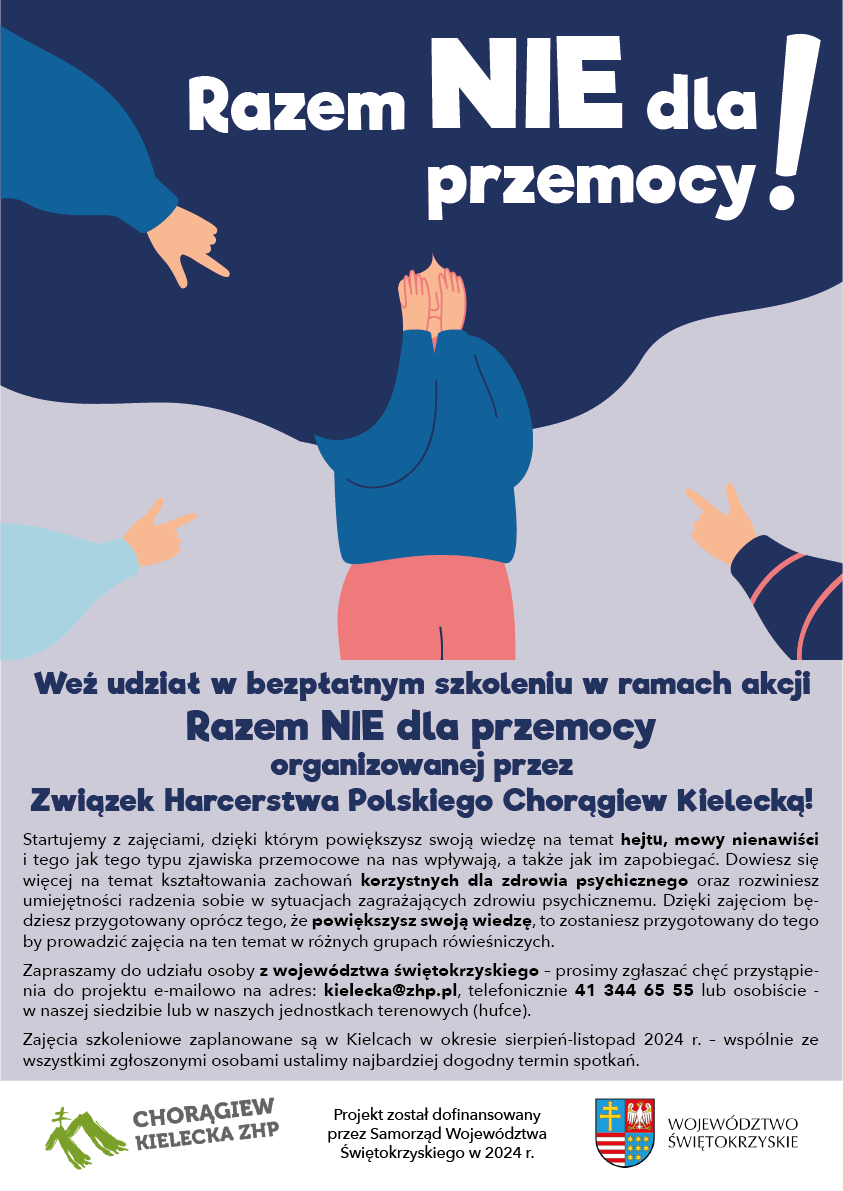 Weź udział w bezpłatnym szkoleniu w ramach akcji Razem NIE dla przemocy organizowanej przez Związek Harcerstwa Polskiego Chorągiew Kielecką!